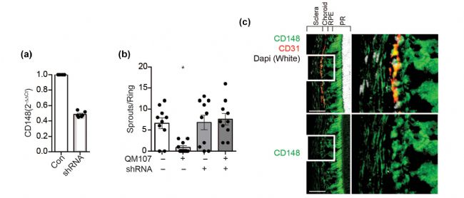 圖4.CD148是QM107活性所必需的,在小鼠脈絡膜ECs中表達