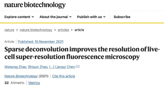 11月16日,哈爾濱工業(yè)大學(xué)李浩宇教授團(tuán)隊(duì)與北京大學(xué)陳良怡教授團(tuán)隊(duì)合作在國(guó)際權(quán)威雜志《自然-生物技術(shù)》(Nature Biotechnology)在線發(fā)布了論文《稀疏解卷積增強(qiáng)活細(xì)胞超分辨熒光顯微鏡的分辨率》(Sparse deconvolution improves the resolution of live-cell super-resolution fluorescence microscopy)。