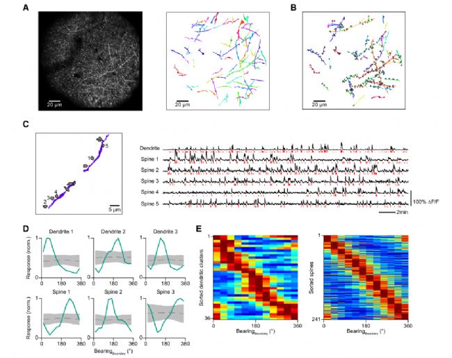 圖1. 微型化雙光子顯微鏡下樹突、樹突棘的自我中心表征