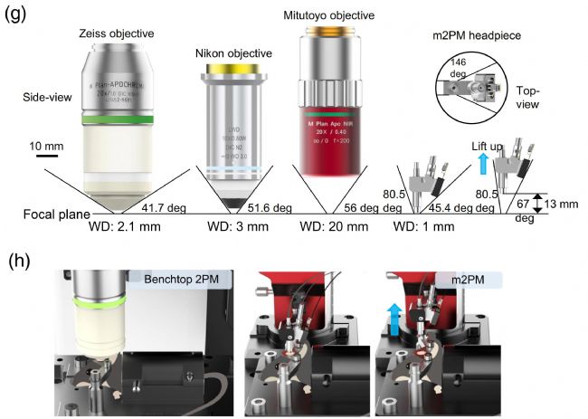 圖4.不同物鏡與微型化雙光子顯微鏡觀察角的對(duì)比
