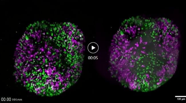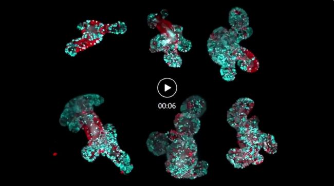 帶有FUCCI 標記的腸道類器官,跟蹤細胞周期動態(tài)過程。由Franziska Moos提供。Liberali lab. FMI Basel(瑞士)。