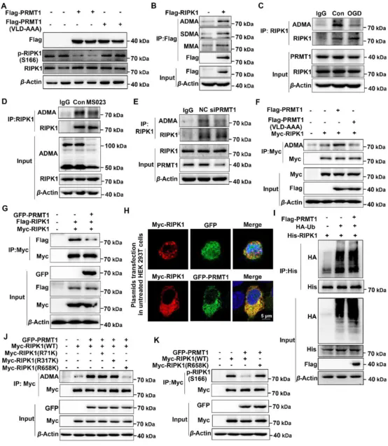 圖1. PRMT1通過促進RIPK1的甲基化來抑制其自身磷酸化