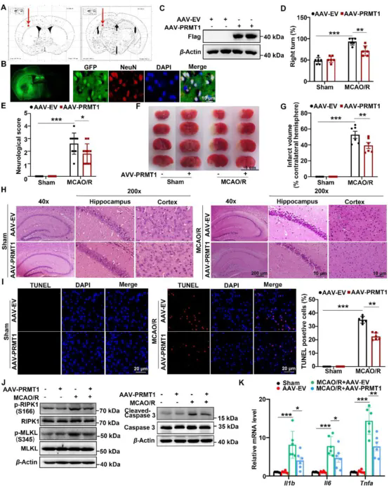 圖3. AAV-PRMT1改善MCAO/R所致的腦損傷