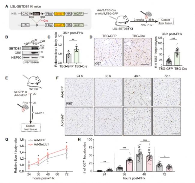 圖1. SETDB1過表達改善了手術切除后的肝臟再生