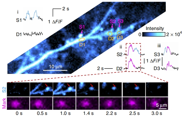 大腦是自然界最為復雜精妙的“小宇宙”,由數百億神經元與數百萬億神經突觸協同運作。如何在自由活動的生命體中精準捕捉神經元與突觸活動的動態變化,是腦科學研究的一個核心難題。