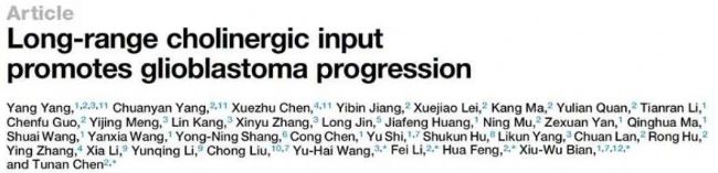 近日,陸軍軍醫大學西南醫院病理科與腦膠質瘤醫學研究中心卞修武院士團隊,聯合該院神經外科馮華教授、陳圖南副教授、李飛教授,以及聯勤保障部隊第904醫院神經外科王玉海教授,在Cancer Cell上發表了一項重要研究,系統繪制了神經元與膠質瘤細胞之間的全腦連接圖譜,并深入揭示了遠距離膽堿能輸入在促進膠質母細胞瘤(GBM)進展中的關鍵作用。該研究為“癌癥神經科學”領域提供了新的研究思路,并提示了潛在的治療新靶點。