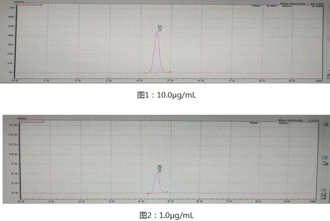 9. 根據(jù)標(biāo)準(zhǔn)配制1.0μg/mL、2.0μg/mL、5.0μg/mL、10.0μg/mL、20.0μg/mL、50.0μg/mL的標(biāo)準(zhǔn)系列溶液進(jìn)行檢測。