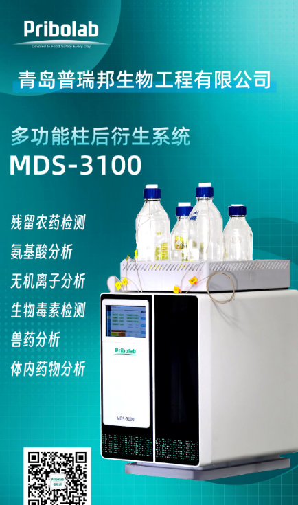 (Pribolab®MDS3000/3100多功能光電衍生系統(tǒng)將試劑衍生和光化學(xué)衍生集成于一體,采用雙流路通道,在試劑衍生和光衍生之間自動(dòng)切換,有效提高檢測效率,將分析工作者從單一的試劑衍生和光衍生工作中解放出來,可對游離甲醛、氨基甲酸酯、草甘膦、六價(jià)鉻、黃曲霉毒素、伏馬毒素、河豚毒素、貝類毒素、牛磺酸、游離甲醛等多種物質(zhì)進(jìn)行衍生)