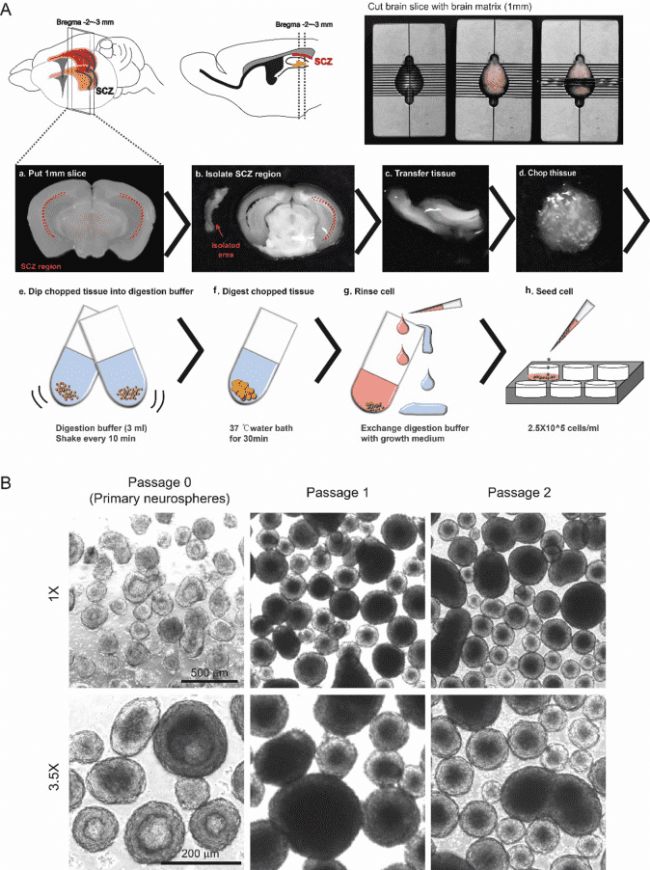 圖 1. 利用Neutral Protease II從胼胝骨下區分離出神經干細胞并形成神經球[3]
