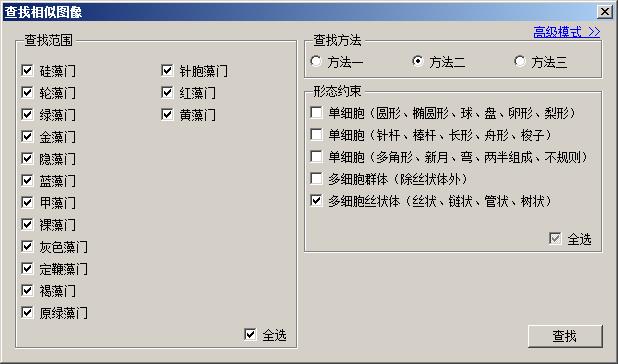 1、萬深AlgaeC系統相似度對比查找范圍可選為全部種類,而非所謂的必須選定門類。例如: