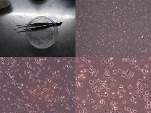 簡述:新生24h或E18胎鼠,取腦,剝離海馬,剪碎,木瓜酶消化,清洗過篩后鋪于多聚賴氨酸包被的培養板中。