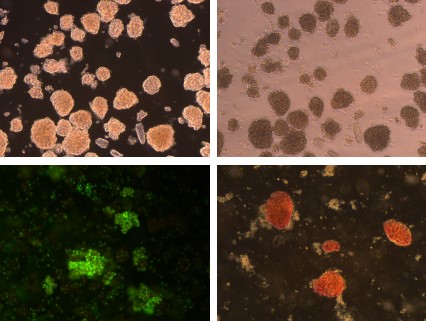 簡述:SD大鼠,常規麻醉、固定、消毒、進腹、膽總管插管,逆行注入預冷的1mg/ml膠原酶P溶液10ml。迅速取下胰腺,38℃水浴消化10分鐘,600μm不銹鋼網過濾,加入4℃新生牛血清和4℃Hank’s液終止消化。細胞懸液離心后,4℃ Hank’s液洗滌兩次。沉淀物加25%Ficoll混勻,其上依次分別加入23%、20%、11%Ficoll溶液和Hank’s液,離心后吸出23%-20% 及20%-11%界面的胰島,用4℃Hank’s液洗滌離心共三次。