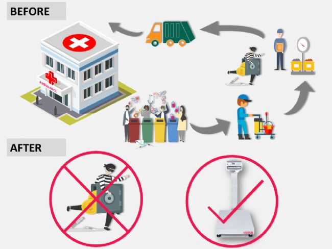 奧豪斯Defender臺秤進行垃圾稱重。可以保證醫療垃圾收集流程的規范、嚴謹。
