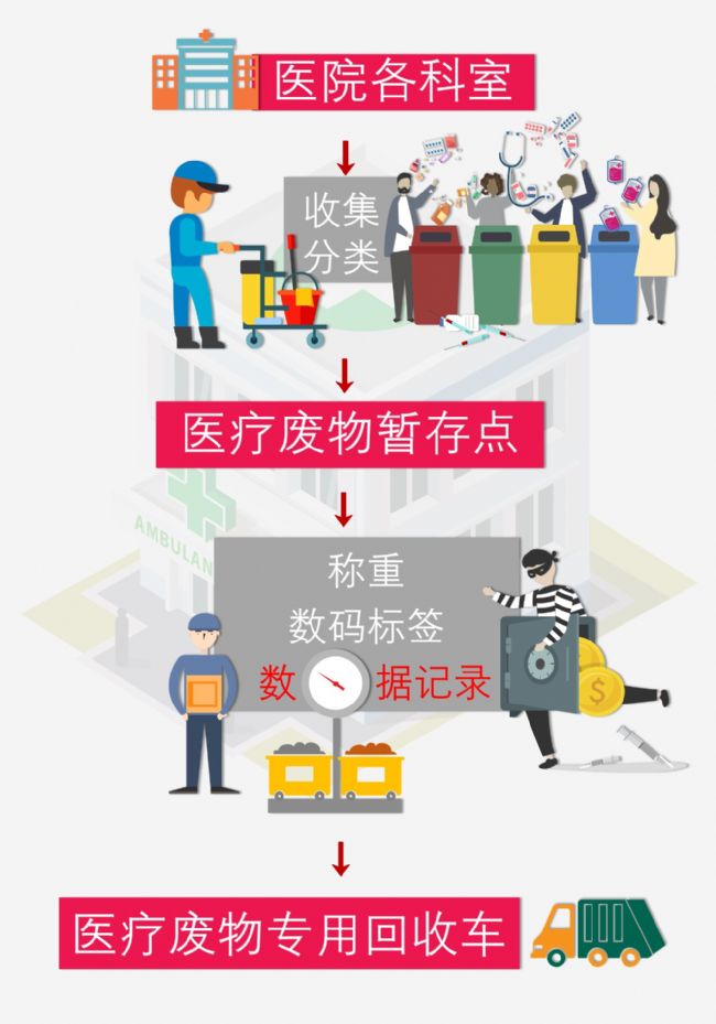醫療垃圾(或稱“醫療廢物”)收集運送有著以下的嚴格流程: