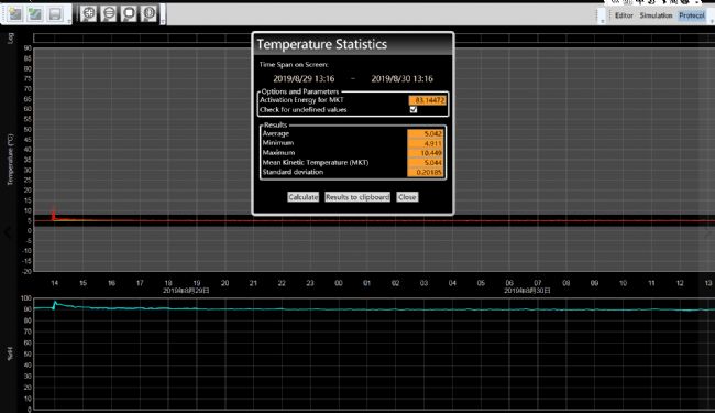 Memmert穩(wěn)定性試驗(yàn)箱配備的軟件AtmoCONTROL內(nèi)嵌了該計(jì)算功能,可以輕松進(jìn)行數(shù)據(jù)統(tǒng)計(jì)與計(jì)算,能夠方便數(shù)據(jù)處理與風(fēng)險(xiǎn)管理。下圖為開門引起溫度波動的計(jì)算實(shí)例,通過MKT計(jì)算可知,即便是溫度短時超標(biāo),也不會帶來顯著性影響。