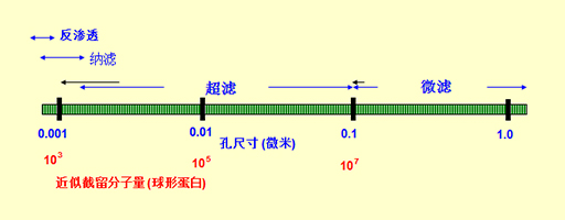 從濾膜的截留孔徑進行分類,可以將過濾分為澄清過濾、微濾、超濾和反滲透等等。