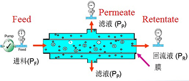 (說明:PF = 進液壓力,PR = 回流壓力,Pp = 透過壓力)