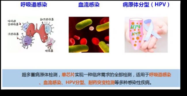 指數(shù)級超多重?cái)?shù)字PCR技術(shù)可以單管反應(yīng)實(shí)現(xiàn)30種以上的病原體檢測分型,通過不同的組合設(shè)計(jì),可以滿足大量的感染性癥狀的臨床應(yīng)用場景。比如:呼吸道感染、消化道感染、血流感染、術(shù)后感染及其它感染性疾病。