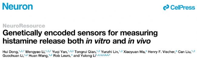 2023年3月15日,北京大學李毓龍實驗室在《Neuron》雜志發表了題為"Genetically encoded sensors for measuring histamine release both in vitro and in vivo"的研究論文。在該研究中,作者開發了一種新型高性能基因編碼的組胺探針GRABHA。利用該探針,作者成功地記錄到了腦切片組織中內源組胺的秒級釋放,并實現了對睡眠覺醒過程中組胺動態變化的在體監測。該探針為組胺的生理病理機制研究提供了強大的工具。