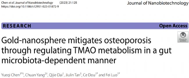 文章標(biāo)題:Gold-nanosphere mitigates osteoporosis through regulating TMAO metabolism in a gut microbiota-dependent manner
