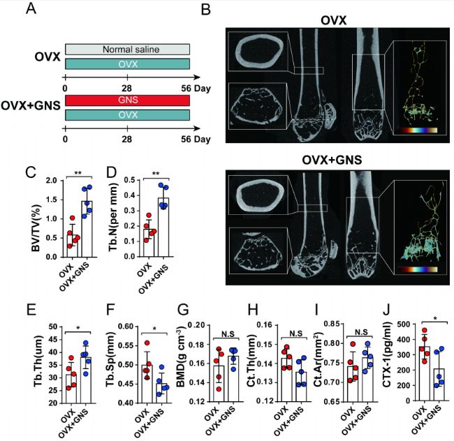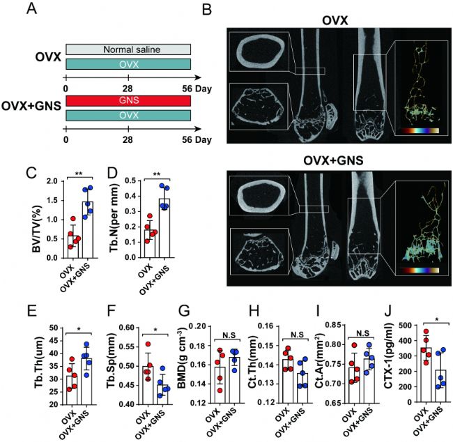 圖2. GNS給藥改善了OVX誘導(dǎo)的骨質(zhì)疏松癥