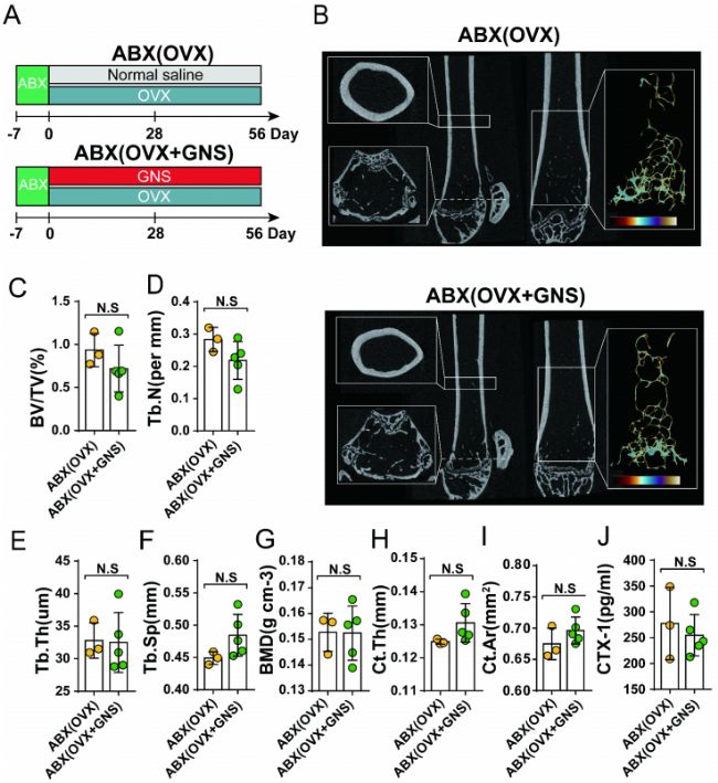 圖3. GNS給藥對OVX誘導(dǎo)的骨質(zhì)疏松癥的保護(hù)作用在腸道微生物群耗竭后消失