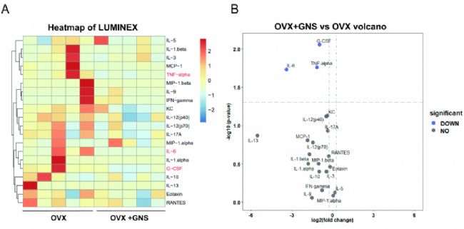 圖9. GNS治療顯著改變了OVX小鼠的炎癥細(xì)胞因子譜