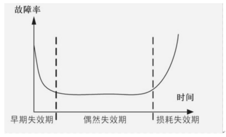 產品失效的發展過程一般遵循“浴盆曲線”狀,可以將其分為三個時期: