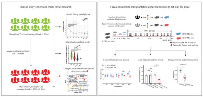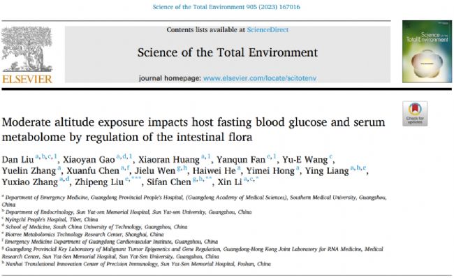 近日,由廣東省人民醫(yī)院急診科李欣教授團(tuán)隊(duì)牽頭中山大學(xué)孫逸仙紀(jì)念醫(yī)院內(nèi)分泌科劉丹教授團(tuán)隊(duì)、中山大學(xué)孫逸仙紀(jì)念醫(yī)院醫(yī)學(xué)研究中心陳思凡研究員團(tuán)隊(duì)、林芝市人民醫(yī)院王玉娥主任團(tuán)隊(duì)、上海百趣代謝組學(xué)技術(shù)研究中心劉志鵬研究員團(tuán)隊(duì)在Science of The Total Environmental上發(fā)表了題為“Moderate altitude exposure impacts host fasting blood glucose and serum metabolome by regulation of the intestinal flora”的論文。研究表明,中等海拔暴露會(huì)影響人體腸道微生物群和血清代謝組,可能為胰島素抵抗相關(guān)的代謝綜合征等疾病的預(yù)防或治療開(kāi)辟新的途徑。