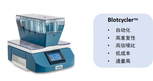 來自美國Precision Biosystems公司的Blotcycler,是一款全自動的蛋白質印跡雜交系統,可自動化完成封閉、孵育、清洗和一抗回收的一系列工作,徹底解放您的雙手。專利的流體清洗減少二抗在膜上的附著,降低背景,提高信噪比和靈敏度;自動化的操作流程避免了手工操作帶來的誤差,保證了批次內和批次間實驗的高度重復性;高通量操作和多條件的設定可以輔助您優化Western Blot 實驗的條件;開放的實驗平臺,無需其他額外投入。Blotcycler是從事Western Blot實驗的科研工作者最佳選擇。
