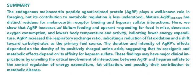 - 研究目的:內源性腎上腺皮質肽刺鼠關聯蛋白(AgRP)在覓食行為研究十分廣泛,但其對能量代謝的調節尚不清楚。