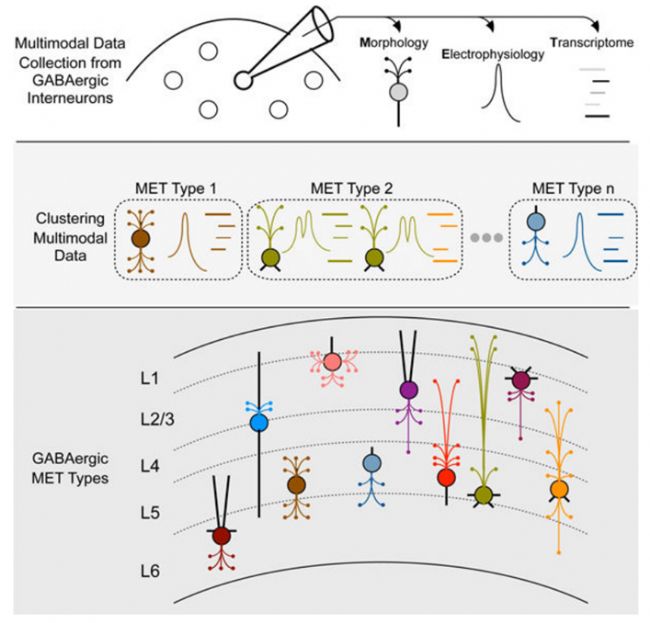 本文的研究結(jié)果為理解大腦皮層GABA能中間神經(jīng)元的類型提供了系統(tǒng)的框架。通過整合多種數(shù)據(jù)分析方法,本文不僅揭示了不同met-types的精細(xì)分類,還展示了這些類型在皮層中的精確定位及其電生理特性。這一研究為未來進(jìn)一步探索神經(jīng)元類型及其功能提供了重要的基礎(chǔ)。
