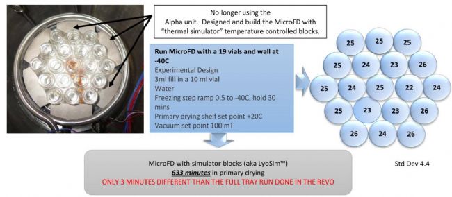 - Kv值調控:通過MicroFD調整鋁塊溫度,模擬實驗室設備(如Lyostar Ⅲ)的熱傳遞系數(Kv),確保小規模與生產設備的熱歷史一致。