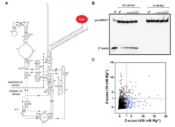 RNA標記:Msm RPR通過5'端延伸的DNA寡核苷酸與Cy5熒光標記的DNA寡核苷酸互補結合,形成熒光標記的Msm RPR。