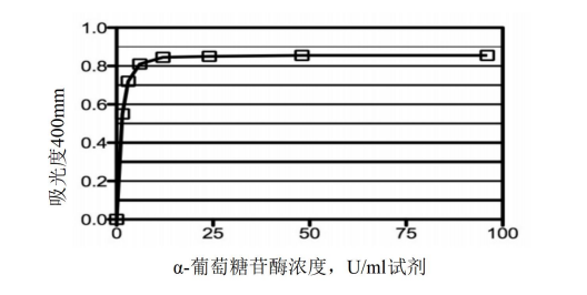圖 2. 耐熱α-葡萄糖苷酶在底物試劑溶液中的濃度對(duì)測(cè)定吸光度值的影響。