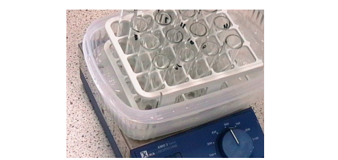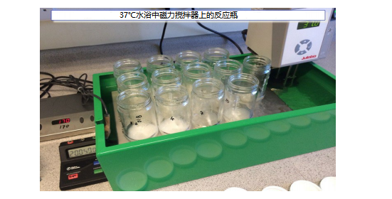 圖3.孵化方法2。樣品(約1.0 g)裝在Fisherbrand瓶中,置于水浴中2mg Mixdrive 15®潛水磁力攪拌器上。這種布置允許在受控速度(170 rpm)和37°C下攪拌15個樣品。