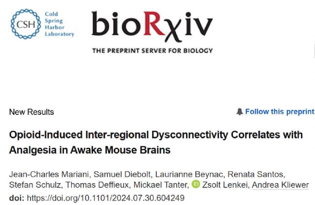 這次我們繼續(xù)介紹一篇采用fUS技術(shù)來研究神經(jīng)藥理的文章,文章標(biāo)題是“Opioid-Induced Inter-regional Dysconnectivity Correlates with Analgesia in Awake Mouse Brains”,來自法國國家健康與醫(yī)學(xué)研究院(INSERM)的Zsolt Lenkei教授和Andrea Kliewer教授團(tuán)隊(duì)。