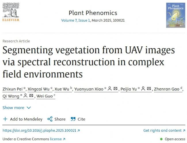 2025年3月,Plant Phenomics 在線發(fā)表了貴州大學SAMLAB團隊題為Segmenting vegetation from UAV images via spectral reconstruction in complex field environments的研究論文。