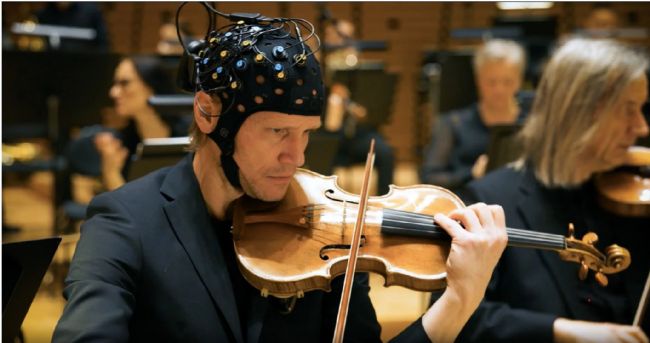 2025年,挪威奧斯陸大學團隊聯合斯塔萬格交響樂團(SSO),在《Sensors》期刊發表研究,該研究通過無線fNIRS設備實時記錄了兩位小提琴手在七場音樂會中的腦活動,并實現了大腦激活的實時可視化。研究人員還探討了重復表演對右半球特定腦區的影響。這項創新性的研究推動神經科學與藝術的交融,更為未來音樂療法、教育及腦機接口技術提供新思路。