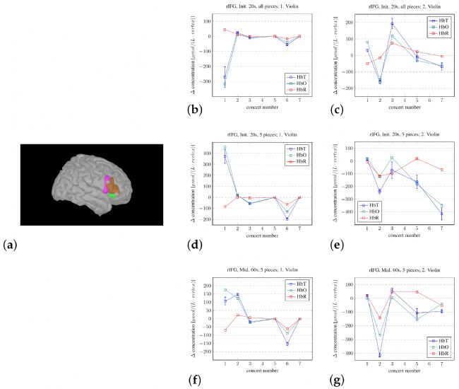 研究的一大亮點,是成功實現了正在演奏的交響樂團音樂家大腦中的血流動力學變化的實時可視化,這意味著我們能 “親眼見證” 大腦在音樂演奏中的實時反應。而且,設備和軟件在大多數情況下運行良好。