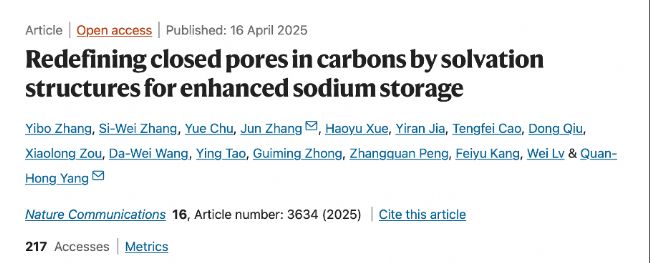 鈉離子電池(SIBs)因資源豐富、成本低廉,被視為鋰離子電池(LIBs)的理想替代品,尤其適用于大規(guī)模儲能。然而,其商業(yè)化進(jìn)程受限于負(fù)極材料的性能瓶頸。硬碳因其高儲鈉容量成為研究熱點,其中閉孔結(jié)構(gòu)被認(rèn)為是提升初始庫侖效率(ICE)和循環(huán)穩(wěn)定性的關(guān)鍵。但長期以來,閉孔的定義模糊(如僅基于N₂吸附能力),且缺乏明確的設(shè)計原則,導(dǎo)致電化學(xué)性能難以突破。近日,天津大學(xué)楊全紅團(tuán)隊以“Redefining closed pores in carbons by solvation structures for enhanced sodium storage”為題在《Nature Communications》上發(fā)表了相關(guān)研究,其中應(yīng)用了QSense QCM-D技術(shù)揭示了閉孔結(jié)構(gòu)的溶劑化調(diào)控機(jī)制與硬碳負(fù)極的鈉存儲性能,取得重大進(jìn)展。