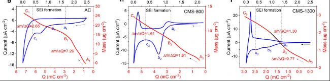 通過質(zhì)量-電荷變化曲線,量化不同孔口尺寸下溶劑化程度:CMS-1300的鈉離子脫溶劑化程度最高(僅2.3個溶劑分子配位)。