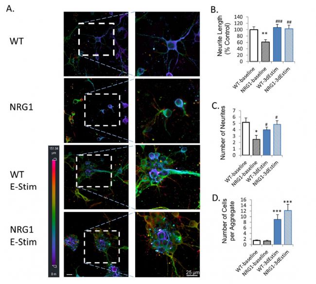 圖 5. 電刺激(ES)對原代神經類器官的影響。