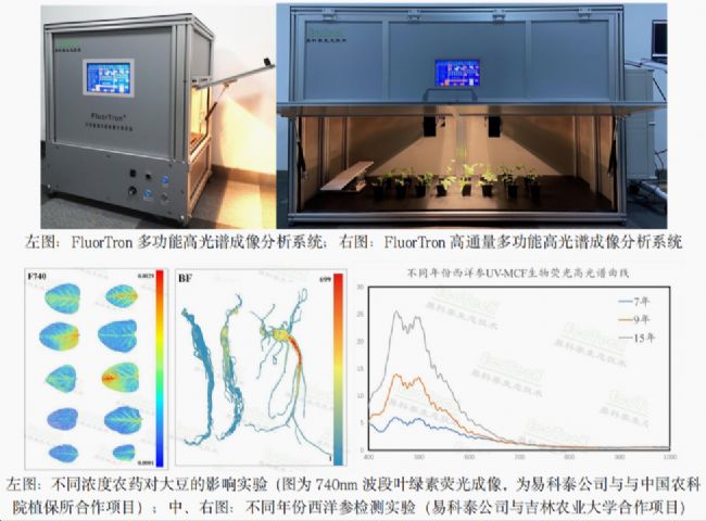 FluorTron®多功能高光譜成像技術(shù)。該技術(shù)采用國際先進(jìn)高光譜成像傳感器技術(shù)、機(jī)器視覺技術(shù)和AI平臺技術(shù),可同時進(jìn)行(反射光)高光譜成像和自發(fā)光(生物熒光)高光譜成像分析,具備高通量、非接觸、非損傷、數(shù)字化/可視化等優(yōu)勢。其中生物熒光包括UV-MCF紫外光激發(fā)次級代謝產(chǎn)物熒光、多激發(fā)光葉綠素?zé)晒飧吖庾V成像分析——全面解碼生物熒光現(xiàn)象,還可非損傷高通量活體檢測植物葉綠素、花青素、胡蘿卜素、黃酮醇等含量指數(shù)。