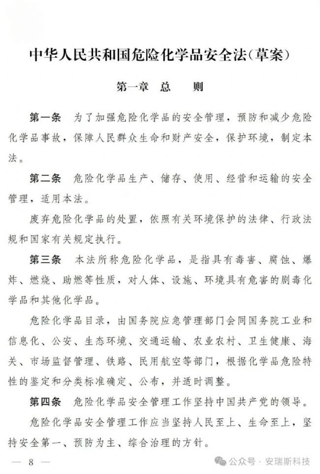這部法律草案的核心是為化學品建立全生命周期的安全管理體系。主要規定了: