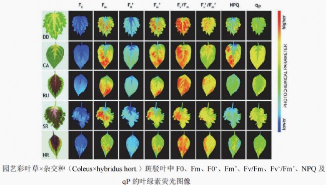 研究發(fā)現(xiàn),葉片不同色素區(qū)域及不同品種間存在顯著差異:雖然紫色部分的葉綠素濃度高于綠色部分,但F0,Fm,F0’和Fm’均略低于綠色區(qū)域,這表明花青素和類胡蘿卜素在紅色區(qū)域中含量較高,具有光保護(hù)作用。