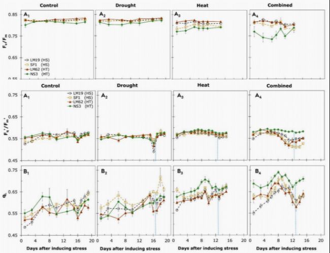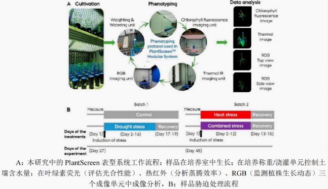 發表于 Agronomy《Investigating Combined Drought- and Heat Stress Effects in Wheat under Controlled Conditions by Dynamic Image-Based Phenotyping》的研究,就采用PlantScreen高通量表型成像分析技術對干旱、高溫及其復合脅迫對四種北歐小麥基因型的影響進行了綜合評價,以篩選耐受性強的品種。