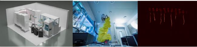 “冥王”(Hades)系統則為一套PlantScreen高通量瓊脂培養植物表型成像分析系統。這是一套專門為瓊脂平板培養植物進行自動接種、培養與表型成像分析的系統。該系統為全自動機器人操作,包括傾倒瓊脂、播種、層積催芽、接種、成像分析全自動運行。可容納2160個特制培養皿的全自動全流程高通量表型分析。系統由具備GMO(轉基因生物)控制區的環控室、操作臺、培養柜(包括層積催芽柜)、機器人及成像工作站等組成,可進行根系形態成像分析、GFP等熒光蛋白成像分析、葉綠素熒光成像分析、多光譜成像分析、高光譜成像(透射光)分析及香豆素熒光高光譜成像分析等