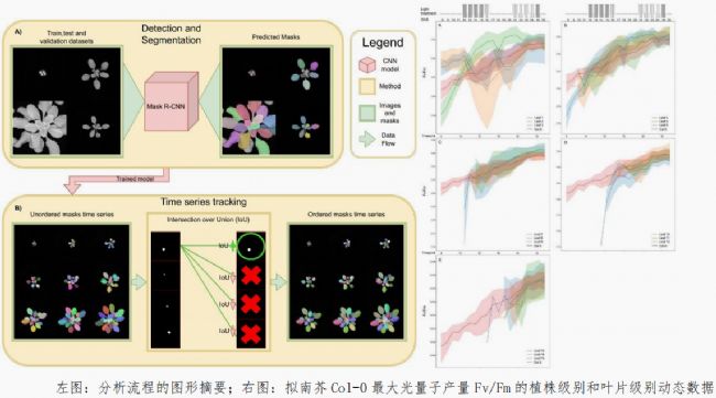 植物光合作用研究對生產力和產量至關重要。隨著高通量表型系統設施的發展,光合表型的測量變得可靠、高效。然而,盡管植物級別的表型分析已自動化,但葉片級別的信息通常仍依賴于手動標注,限制了研究效率。本研究提出了一種新方法,用于在植物(以擬南芥為例)的頂部拍攝圖像時間序列中,對單個葉片進行自動檢測、分割和追蹤。