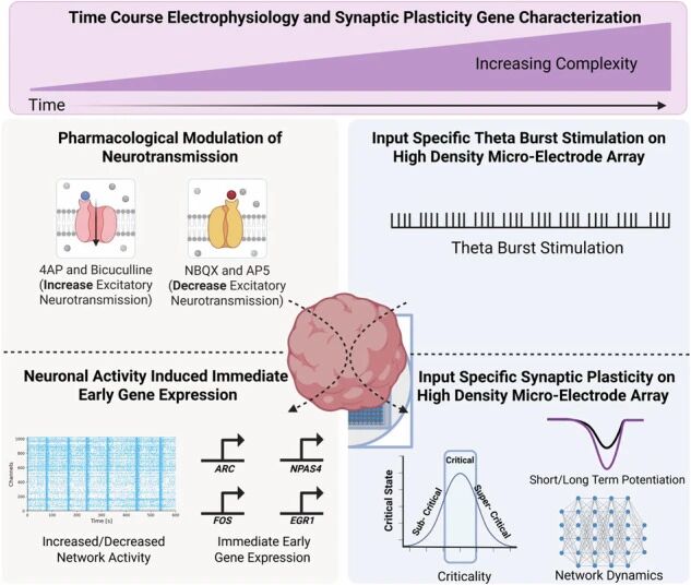 通過藥理學與電刺激干預,研究進一步證實類器官能夠模擬短期與長期突觸可塑性,為其作為研究認知過程與神經系統疾病的體外模型提供了有力證據。
